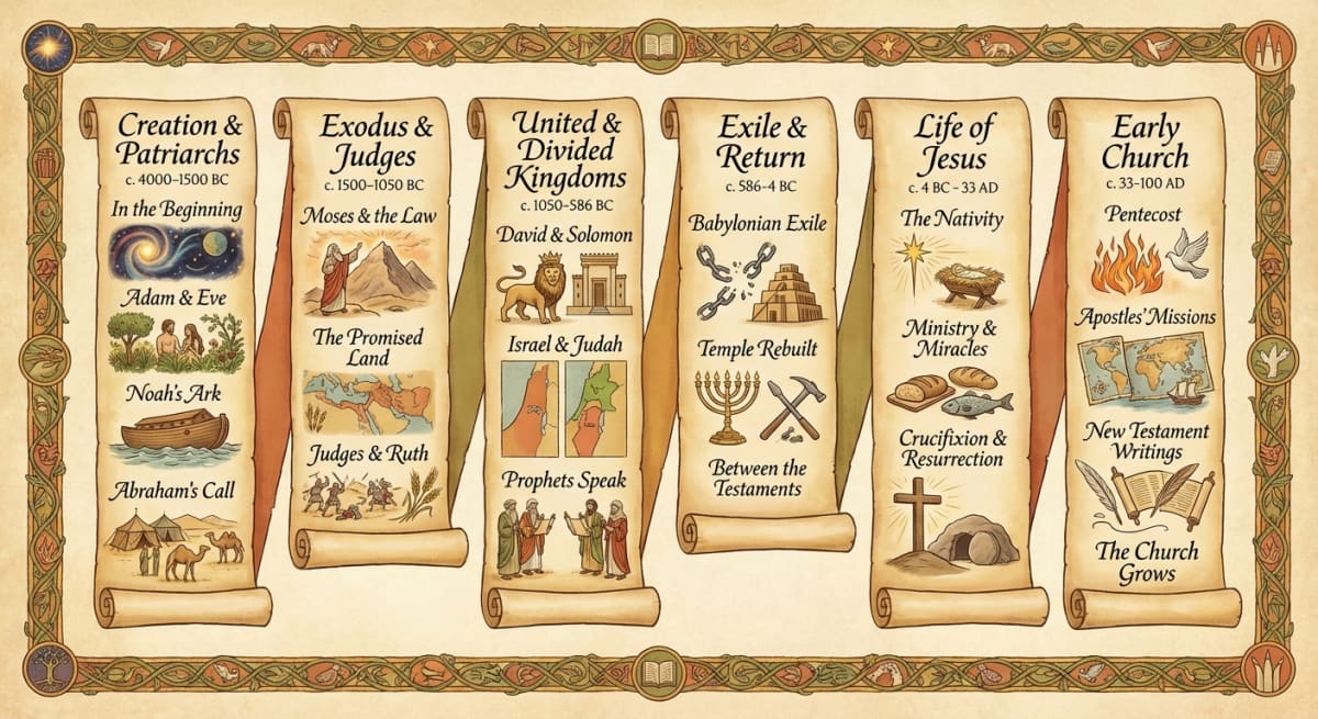 Maybe you've read the Bible before. Or maybe you want a new view. Reading in time order shows links you've never seen. You'll learn when the prophets spoke. You'll see why David wrote certain Psalms. And you'll watch God's promise of rescue unfold step by step.